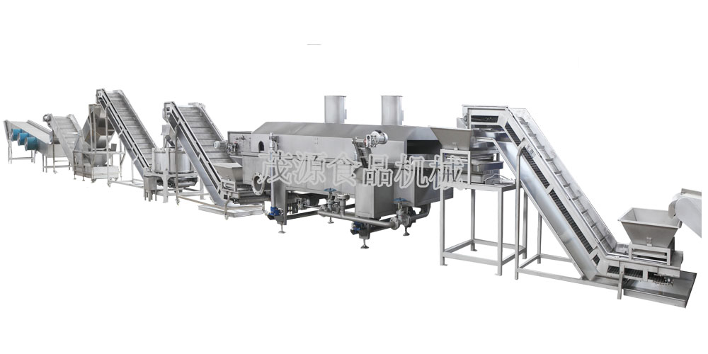 網帶式連續油炸生產線可廣泛應用于豆類、堅果、裹粉顆粒食品、薯片、薯條、膨化食品等加工生產。